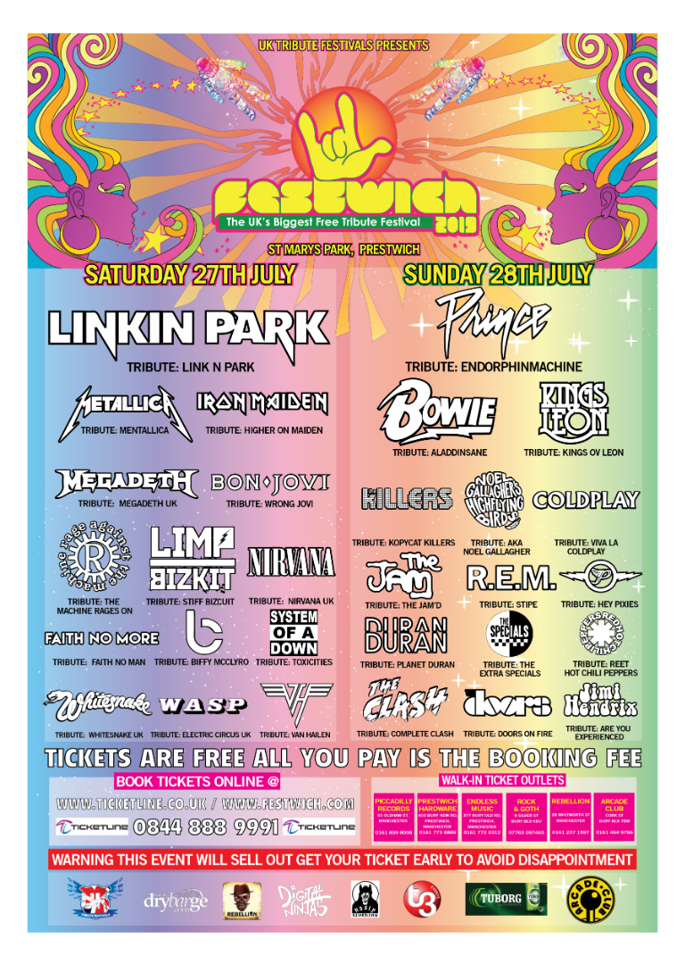 This year promises to be the biggest line up of tribute artist yet, with over 30 bands already announced including tributes to Prince, Bowie, Kings Of Leon, Duran Duran, Linkin Park and many more. Free tickets for this year are expected to be snapped up in record time, tickets will be released Friday 25th January 10am via www.festwich.com & www.ticketline.co.uk